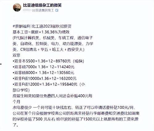 首先,咱们得了解一下比亚迪的基本情况。比亚迪是一家全球领先的新能源汽车制造商,总部位于中国深圳,而西安比亚迪则是其重要的生产基地之一。近年来,随着新能源汽车市场的火爆,比亚迪的业绩也是节节攀升,员工福利自然也是水涨船高。